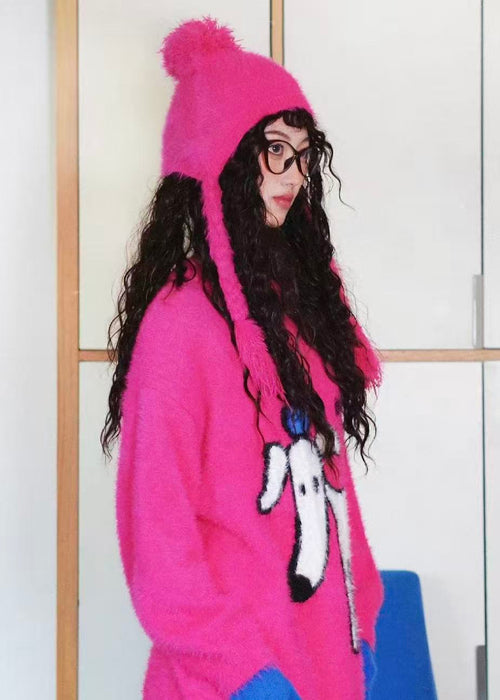 Matching Style Set-DYAATPET Rose Pink Fun Apple Dog Mink Fleece Sweater